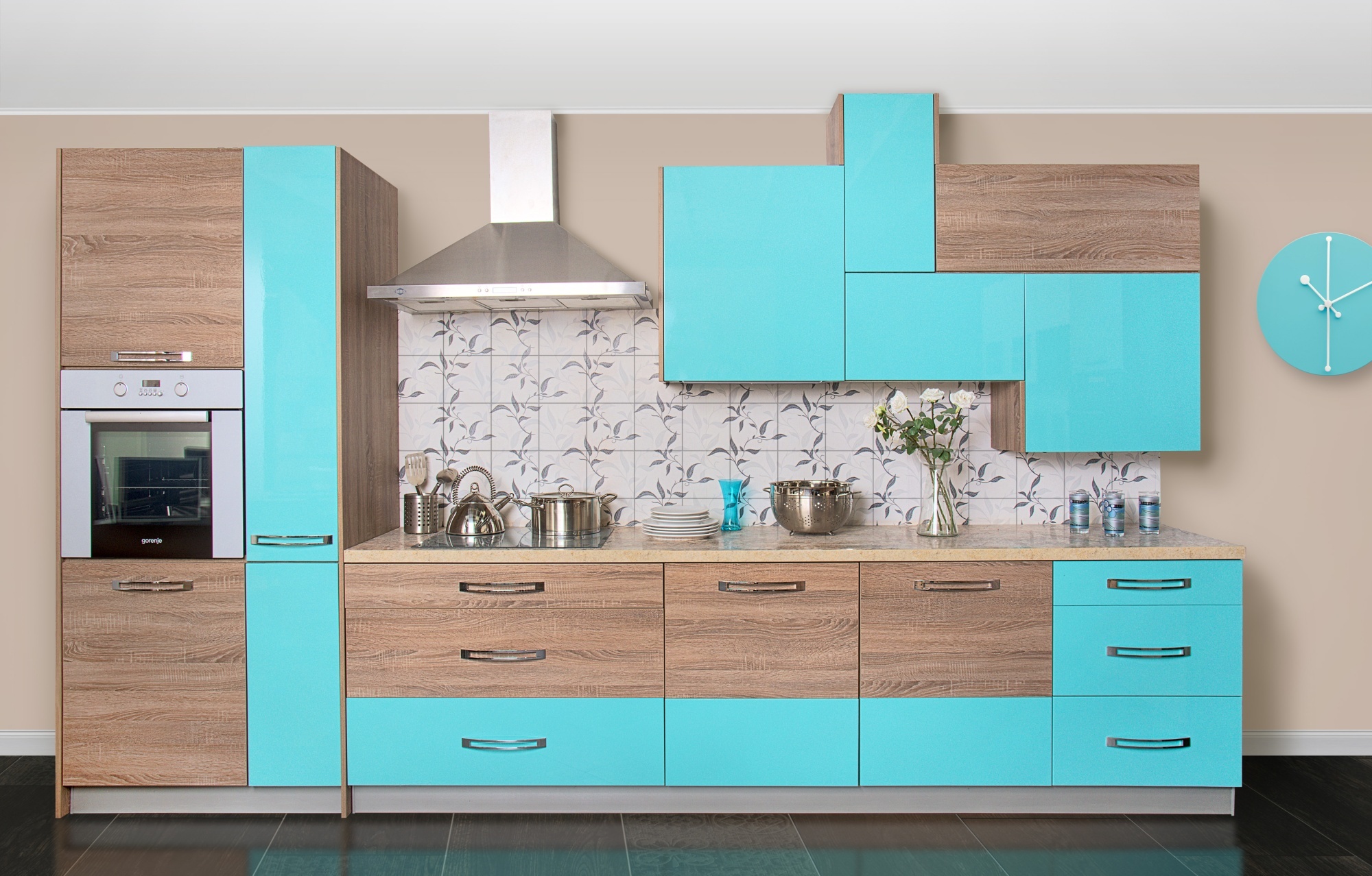 Фасады скомбинированы из ЛДСП и высококачественного МДФ, покрытой пленкой, корпус - ЛДСП.