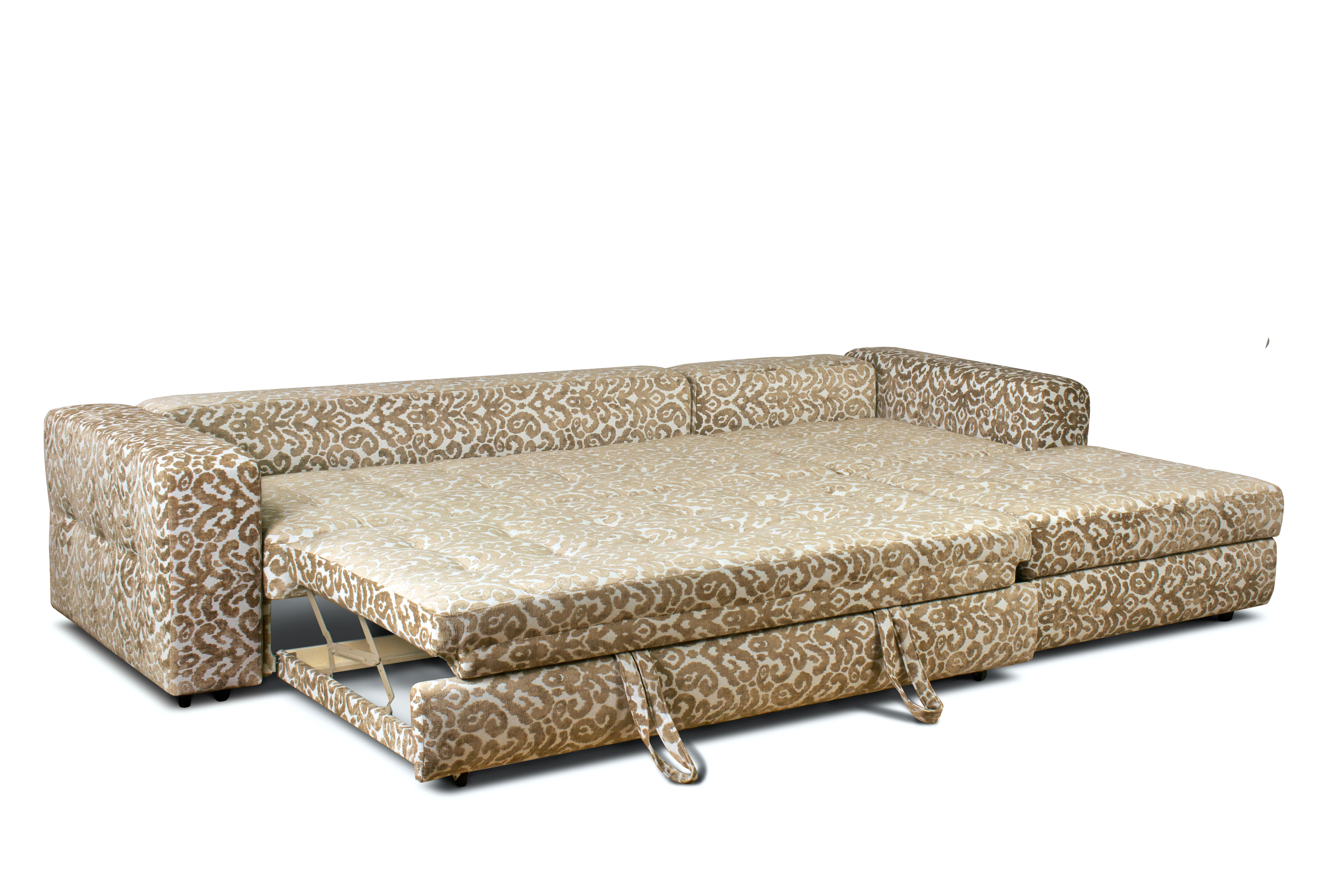 Дельфин относится к классу выкатных механизмов. В данной конструкции вторая половина "матраса" находится под сидением. А когда его нужно разложить, выдвижной ящик выезжает вперёд, нижняя секция поднимается до уровня верхней.