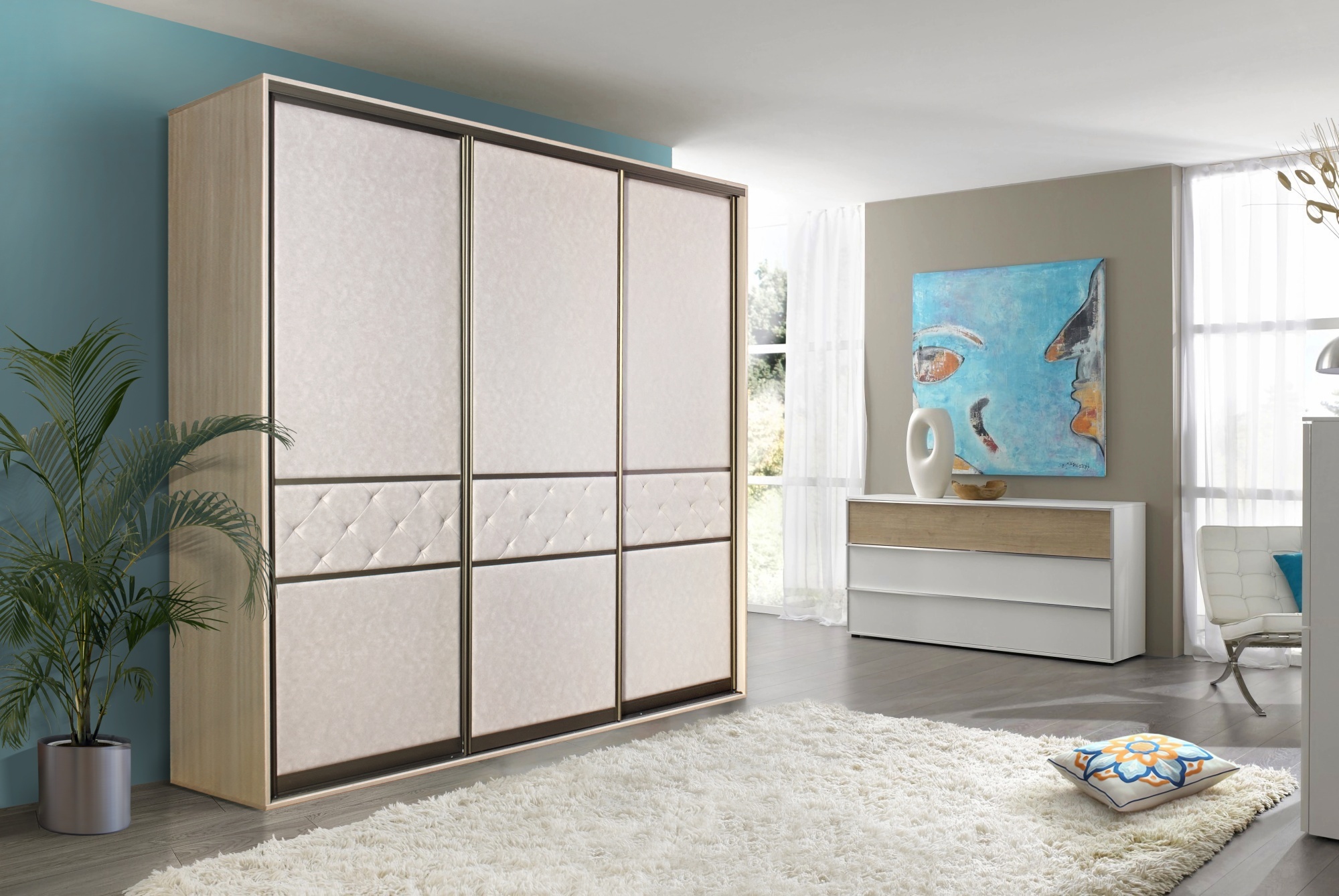 создать гармоничный союз с любой мягкой мебелью и текстилем в вашем доме. Вставки в духе каретной стяжки – важный элемент декора не только в классических интерьерах, но и для современных видов дизайна. Такой шкаф придает интерьеру эксклюзивность, стиль, добавляет уюта. Широкий выбор ткани с различными ценовыми категориями, а также вариантов ЛДСП помогают воплотить в жизнь любую задумку.